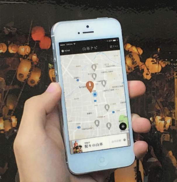 山車にGPS端末を搭載し、その位置をサーバーを通じて利用者のスマートフォンへ配信します。 スマートフォン側では、すべての山車の位置を地図上で観察できます。また、各山車の写真や情報を参照することができます。 さらに、まつりに関するリアルタイムな情報を受け取ることもできます。
